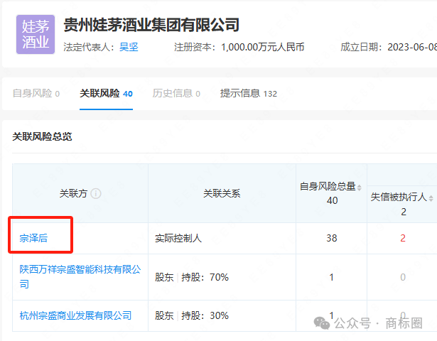 商标的注册凡是是企业品牌扶植的主要环节,通过注册奇特的商标,能够企业的学问产权,提拔品牌的辨识度和价值。然而,娃茅酒业注册的这些商标名称,让人不由联想到娃哈哈等出名品牌,这能否又是一种成心为之的策略呢?不只如斯,小编通过查询发觉贵州娃茅酒业集团无限公司的现实节制人是哇哈哈集团创始人的弟弟泽后,娃茅就业两次碰瓷哇哈哈的行为就更让人摸不着思维了。