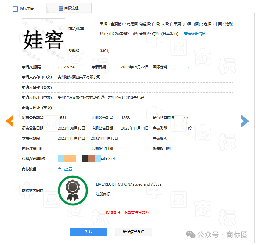 值得一提的是,贵州娃茅酒业集团无限公司还于本年 4 月申请注册了数枚 “窖哈哈”“哈台” 商标,目前这些商标的形态大多已注册成功。